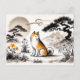Loyal Dog in Garden Under Bonsai ink art Holiday Postcard