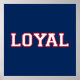 The word "LOYAL" is prominently displayed in the classic team colours of Navy Blue Red White. The text of "Loyal" is in all caps, and the font looks like athletic jersey font. A huge selection of preset colour combinations is available, so find your team colours and display your fan loyalty. Perfect for high school students, college students, or pro team fans, this product is perfect for attending class, football games, attending your kid's sports, or watching a game at a sports bar.