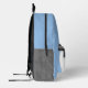 This volleyball themed backpack for girls or boys is accented with the realistic image of a volleyball that has light blue, grey and white panels - the front pocket features the oversized image of that same volleyball, upon which you can easily personalise the athlete's name and jersey number - customise with school / club name and team mascot name encircling the top of the smaller volleyball graphic - you can customise the backpack's colours, currently light blue & grey - a digitally-created texture-look graphic overlies the backpack's grey components (left & right panels and top of zippered pocket) for a distressed appearance, which can be removed if desired - by katz_d_zynes