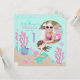 Little mermaid first birthday invitation card with underwater creatures and a photo insert template.