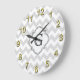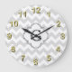 Lt Gray White Chevron White Quatrefoil Monogram Large Clock