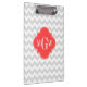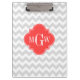 Lt Grey White Chevron Coral Quatrefoil Monogram Clipboard