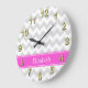 Lt Grey White Chevron Hot Pink Name Monogram Large Clock