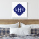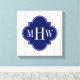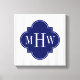 Lt Grey White Stripe Navy Quatrefoil 3 Monogram Canvas Print
