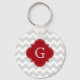 Lt Grey Wht Chevron Cranberry Quatrefoil Monogram Key Ring