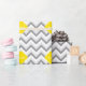 A stylish, modern, chic chevron zig-zag pattern in light grey, medium grey and white. Customise the yellow quatrefoil label with your monogram, name or other text. (Click on "Customise it" to adjust font sizes, colours, etc.)