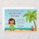 Luau Birthday Party Invitations. This tropical Birthday Party Invitation features a dark haired hula girl, a palm tree, hibiscus flowers and can be customised with your party details. Makes a great keepsake of your child's birthday that you can keep for years to come. Some elements ZenwareDesign@MyGrafico