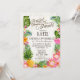Rustic beach luau theme with tropical floral featuring plumeria, hibiscus, and pineapple bridal shower card.