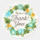 Luau beach and tropical floral and rustic white wood background thank you label design.