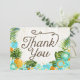 Rustic beach luau theme with tropical floral featuring plumeria, hibiscus, and pineapple thank you card.