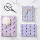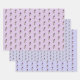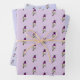 Cute wrapping paper featuring a Lucifer hummingbird pattern on a light lilac background and on two shades of violet.