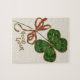 Puzzle with a Four leaf clover, or shamrock, with "Good Luck" from the luck of the Irish.