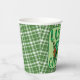 Lucky and I Gnome It St Patrick's Day Party Paper Cups. Funny quote image with a large green hat and two gnomes wearing green plaid. Green plaid wrapped around. Personalise this template.