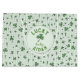 Features a cute pattern of green clovers and little green hearts on a tiny gingham green background. Personalised with baby's name on both sides.