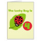 Bright, cute, and lucky best describes our Lucky Bug 4th Birthday T-shirts, bodysuits, tote bags, birthday buttons, magnets, keepsakes, posters, and other baby's 4th Lucky Bug Birthday apparel and gifts.