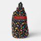 Lucky Casino Dice sling bag has a flaming red dice with casino chips and dice background pattern and personalise with a name. Great sling bag gift for someone that loves dice games.