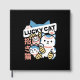 This Japanese-inspired lucky cat design features a cute Maneki Neko surrounded by traditional symbols of good fortune, including a Daruma doll, gold coins, cat paws, and Japanese text. A charming illustration that represents luck, prosperity, and happiness. Perfect for fans of Japanese culture, kawaii art, and meaningful gifts. Ideal for stickers, apparel, wall art, and accessories.