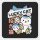 Lucky Cat Art – Maneki Neko with Gold Coin Square Sticker