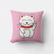 Lucky Cat for Cat Lovers Pink Throw Pillow