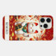 Lucky Cat With Gold Coins On Red Monogrammed iPhone Case
