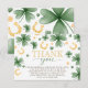 Send a note of gratitude with this matching lucky charm thank you card. Featuring signature watercolor clovers and gold horseshoe accents. Perfect for thanking guests after your lucky-themed baby shower. Elegant green and gold stationery.