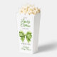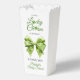 Lucky charm sage green bow with green clover St. Patrick's Day Irish girl baby shower favor box. Celebrate the upcoming arrival of your little lucky charm with this adorable St. Patrick's Day-themed baby shower favor boxe! An elegant sage green coquette bow, decorated with bright green clovers, adds a touch of Irish whimsy. There also is the text "A little Lucky Charm is on the way," using shamrocks to replace two letters and set a joyful mood.