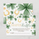 Help the parents-to-be with these 5x3.5'' lucky charm diaper raffle cards. Featuring green shamrocks and golden horseshoe details. Guests can win a prize by bringing a pack of diapers to your lucky-themed baby shower celebration.