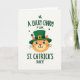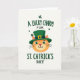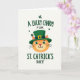 This card shows a plump-cheeked orange cat centered on a white background, wearing an emerald-green leprechaun top hat with a gold buckle ☘️. The cat’s green eyes match the hat, and its gentle smile feels like it’s meant for a close friend or someone you adore. Small four-leaf shamrocks float around the cat, adding little pops of green that frame the character without crowding it 💚. Near the top, the text “A LUCKY CHARM FOR” sits above the illustration in a casual, hand-drawn style, set in green. Below the cat, “ST. CATRICK’S DAY” is placed as the main line of wording, with “DAY” shown in a dotted texture for extra detail. The warm orange fur stands out against the cool greens, keeping the focus on the cat and its hat. The hat tilts neatly above the cat’s ears, and the scattered shamrocks sit at different angles around the page.