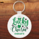 This festive key chain features text image "Lucky Charm" with shamrocks and hearts. Add your name to personalize or delete for a clean look. Perfect for St Patrick's Day.