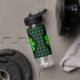 Water Bottle: Rustic green and black buffalo plaid pattern with Shamrock lucky clover leaf charm for your Christmas festive holidays and St. Patricks day.