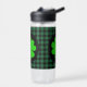 Lucky Clover charm, Shamrock, Green buffalo plaid Water Bottle