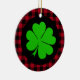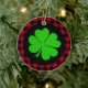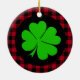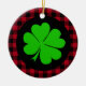 Lucky Clover charm, Shamrock, red buffalo plaid Ceramic Tree Decoration