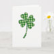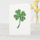 This design shows a single four-leaf clover centered on a bright white background, with four heart-shaped leaves that feel like they’re leaning in toward each other like close friends. Each leaf and the slim stem are filled with a green-and-cream gingham pattern, like a picnic cloth you’d spread out for a sweet St. Patrick’s Day moment 💚. A thin, dark outline traces the clover’s edges, keeping the shape crisp against all that open white space. There are no characters or scenery beyond the clover, but the heart-like leaves suggest a gentle, romantic touch, as if luck and affection are wrapped into the same symbol ☘️. The text “Happy St. Patrick’s Day” sits above the clover in dark green, centered and easy to read. A smaller line of text rests below the stem in a lighter green, aligned to the middle like a quiet note. The overall layout stays simple and airy, with the patterned clover as the clear focal point against the white field.