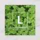 St. Patrick's lucky shamrock. Green nature, green clover with monogram, morning dew meadow, personalised letter, gardener design