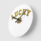 Great quality clock and very well made. Just what I was looking for to finish my hall off. Looked in loads of other websites and eventually found exactly what I was looking for at Zazzle. Designe and colour is perfect. I just love it. Bought the medium size and fits well for where I was placing it.