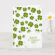 Customisable St. Patrick's Day greeting card with lucky four-leaf clover / Irish shamrocks on green and white.