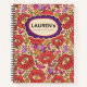 The cover showcases a bold repeating motif of protective eyes, blooming florals, and symbolic elements inspired by themes of luck, prosperity, and creative energy. At the center, a decorative badge highlights personalized text, making this journal a meaningful keepsake or thoughtful gift.