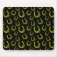 Lucky Golden Horseshoe with Shamrock on Black Mouse Mat
