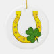 Lucky Golden Horseshoe with Shamrock on White Ceramic Tree Decoration