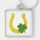 Lucky Golden Horseshoe with Shamrock on White Key Ring