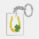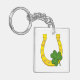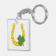 Lucky Golden Horseshoe with Shamrock on White Key Ring