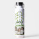 "Lucky Grandma" St. Patrick's Day Water Bottle. Personalise this charming design for a lucky grandma to show off her grandkids. Perfect for a fresh, modern aesthetic. Cute shamrocks, four leaf clover, flowers, and leaves make up this delightful pattern. Beautiful spring time greens and yellows with muted blues make this a vibrant yet sophisticated and eye-catching design. White background. Customise this bottle with two (2) photos. Personalise the text on the front and back. Change Grandma to Nana, Grammy, Gigi, Abuela, Gran, or your favourite name.