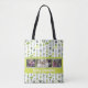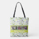 "Lucky Grandma" St. Patrick's Day tote bag. Personalise this charming design for a lucky grandma to show off her grandkids. Perfect for a fresh, modern aesthetic. Cute shamrocks, four leaf clover, flowers, and leaves arranged in stripes make up this delightful pattern. Beautiful spring time greens and yellows with muted blues make this a vibrant yet sophisticated and eye-catching design. White background. Customise this bag with six (6) photos—three (3) on the front and three (3) on the back. Personalise the text on the front and back. Change Grandma to Nana, Grammy, Gigi, Abuela, Gran, or your favourite name.