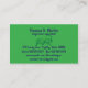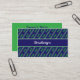 Several lucky grasshoppers jump across your business or calling card…making friends between the stripes. The business card is royal blue with green grasshoppers and green and white stripes. The single grasshopper on the back side of the card may be replaced by your own logo or removed.