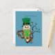 This charming barn owl is dressed for a bit of Irish luck, perched proudly on a twisting tree branch while holding a bright green shamrock close to its heart. Topped with a tall green hat and a tiny clover accent, this sweet woodland barn owl blends whimsy with festive spirit. A little owl wisdom and a four leaf clover can brighten the day.