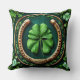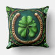 Vibrant illustration depicting a golden horseshoe paired with a lush four-leaf clover and decorative green vines symbolising luck, prosperity, and nature.