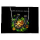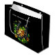 Gift bag with a St. Patrick's Day themed image. A black and gold horseshoe sitting in a bed of green clover with shiny gold coins.