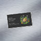 Magnetic business card with a St. Patrick's Day themed image. A black and gold horseshoe sitting in a bed of green clover with shiny gold coins.
