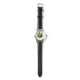 Watch with a St. Patrick's Day themed image. A black and gold horseshoe sitting in a bed of green clover with shiny gold coins.