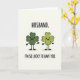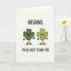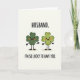 This card shows two smiling four-leaf clovers standing side by side on a creamy background, like a couple posing for a sweet photo on St. Patrick’s Day 💚. The left clover is a deeper emerald green, with tiny black eyes, a wide grin, and warm orange cheeks that give it a bashful, affectionate look. The right clover is a lighter yellow-green, matching the smile and blush as if it’s returning the same fond attention ☘️. Both characters have simple black stick arms and legs, and each stands on a small earthy oval shadow that anchors them to the page. At the top, “HUSBAND.” sits centered in rounded black sans-serif letters. Near the bottom, “I’M SO LUCKY TO HAVE YOU.” appears in the same black type, spaced neatly beneath the pair. The two clovers lean toward each other in their expressions, creating a cozy, close feeling through their mirrored faces and rosy cheeks. The final detail is the soft tan ovals under their feet against the pale cream backdrop.